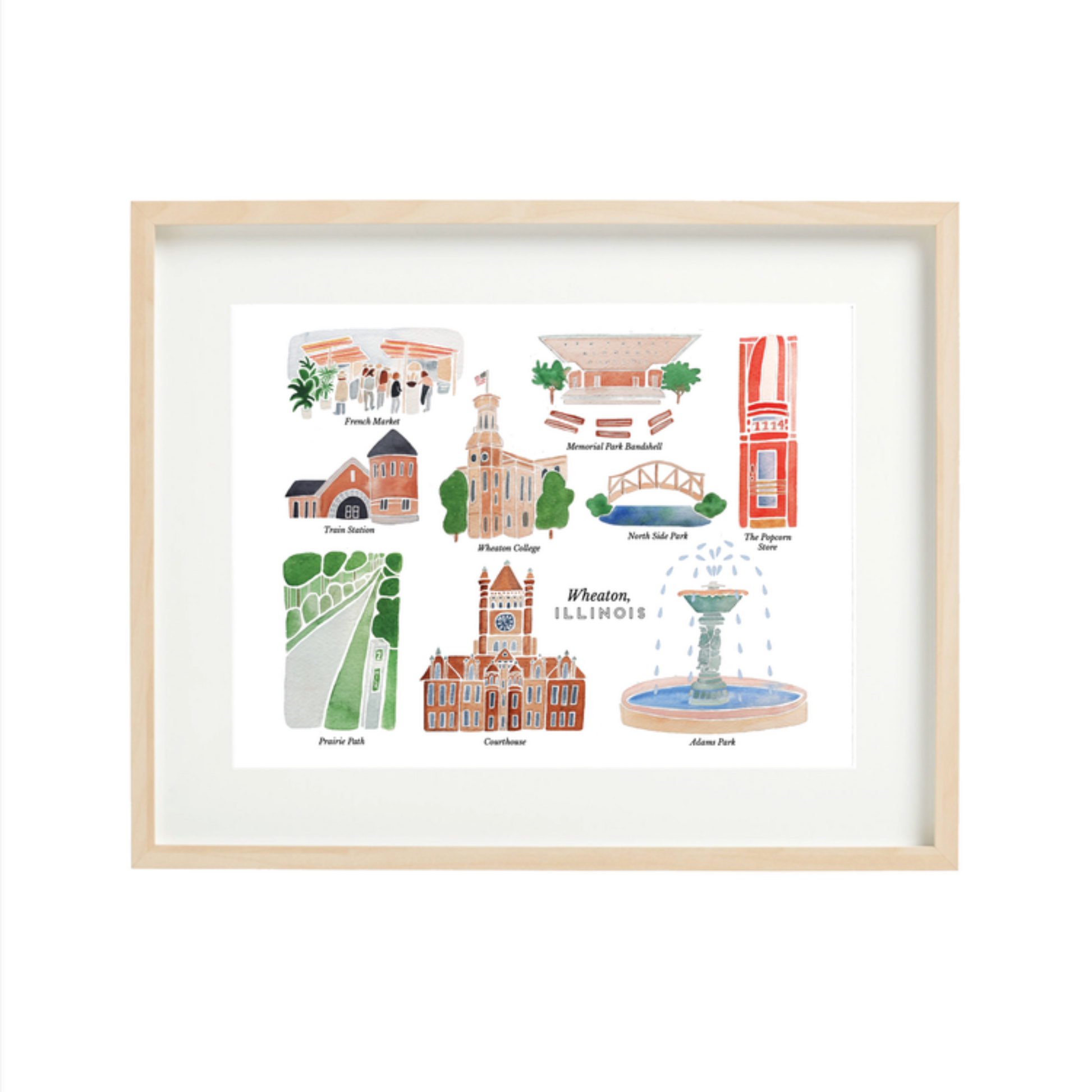 - Hand-Illustrated 8x10 "Wheaton Landmarks Print" by Common Silver